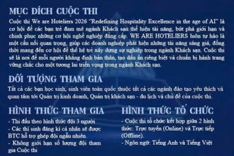 Hỗ trợ truyền thông Cuộc thi We Are Hoteliers 2026 Phạm Thị Thanh Hoan Công tác sinh viên 29-01-2026 02:54:01 Lượt xem: 9 1️⃣ ĐỐI TƯỢNG THAM GIA: Tất cả các bạn học sinh, sinh viên toàn quốc thuộc tất cả các ngành đào tạo yêu thích và quan tâm tới Quản trị…
