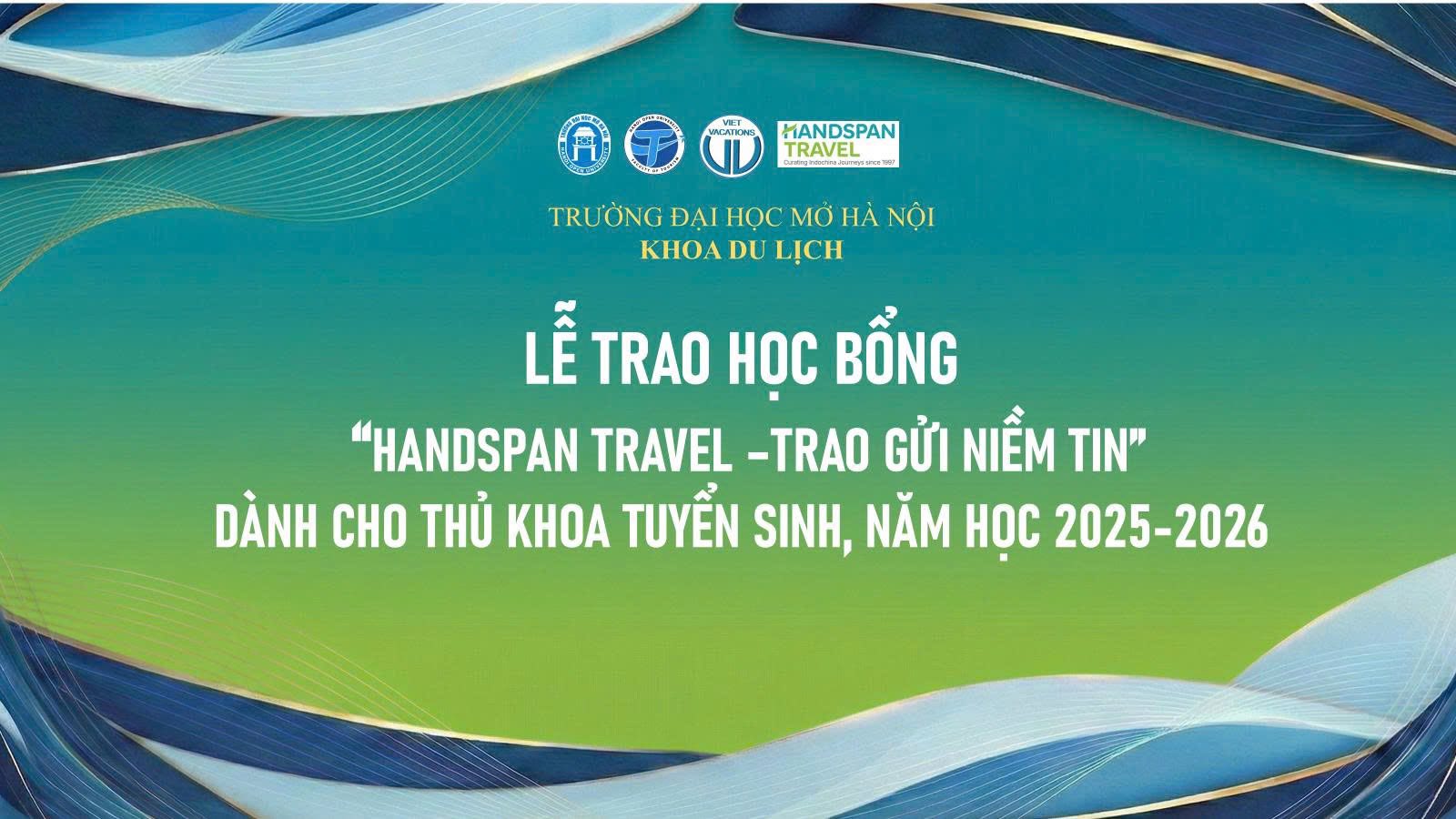 Nhân dịp này, Khoa Du lịch xin gửi lời cảm ơn chân thành đến Handspan Travel và Vacations Việt Nam đã luôn đồng hành, chung tay “gieo mầm” cho tương lai. Kính chúc mối quan hệ hợp tác giữa Khoa Du lịch và các doanh nghiệp đối tác ngày càng phát triển bền chặt. Chúc các em sinh viên sẽ tiếp tục nỗ lực học tập, rèn luyện bản thân để xứng đáng với niềm tin được gửi trao, tự tin đóng góp trí tuệ và nhiệt huyết của mình cho sự phát triển của ngành Du lịch nói riêng và của đất nước nói chung.