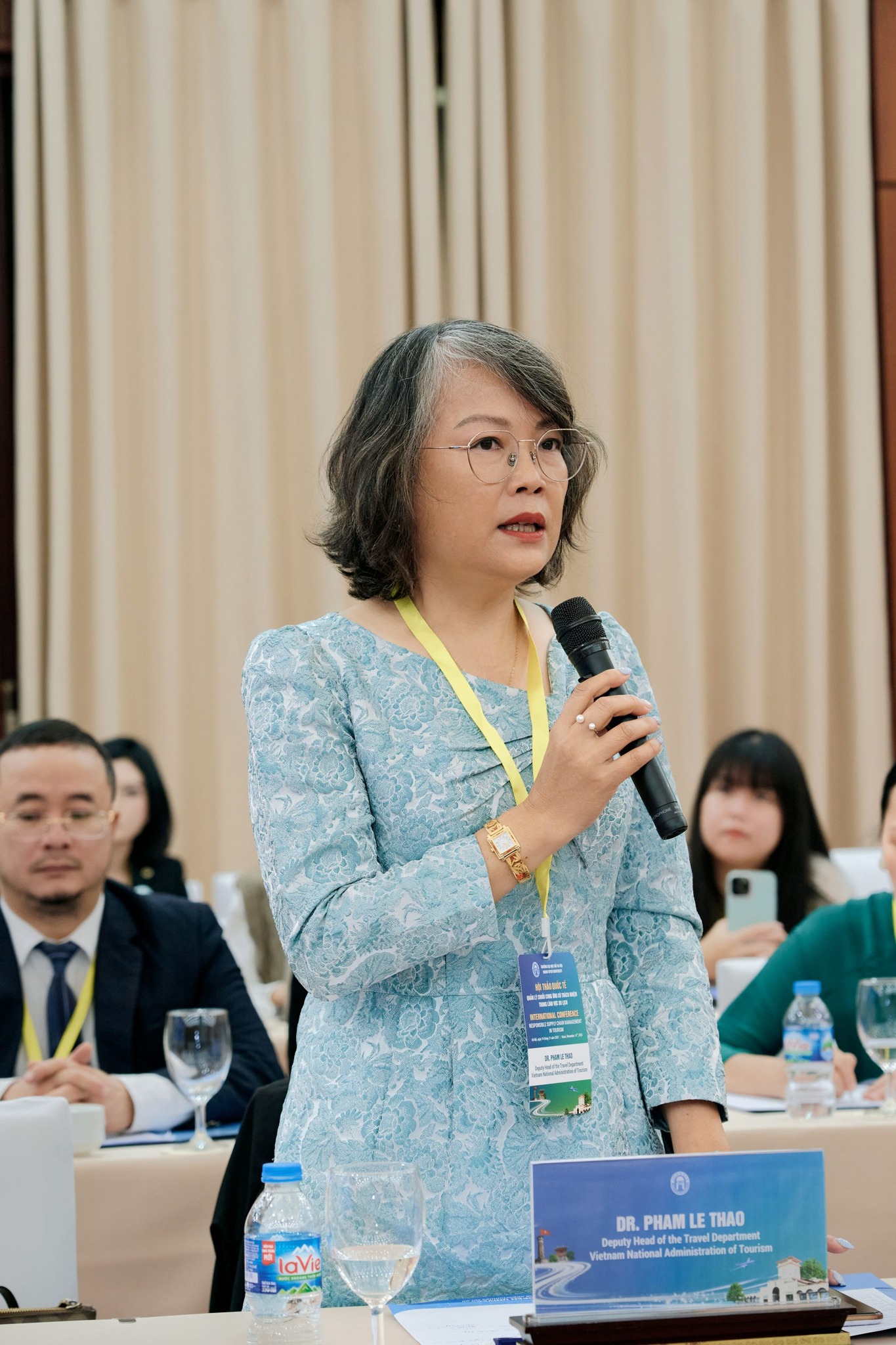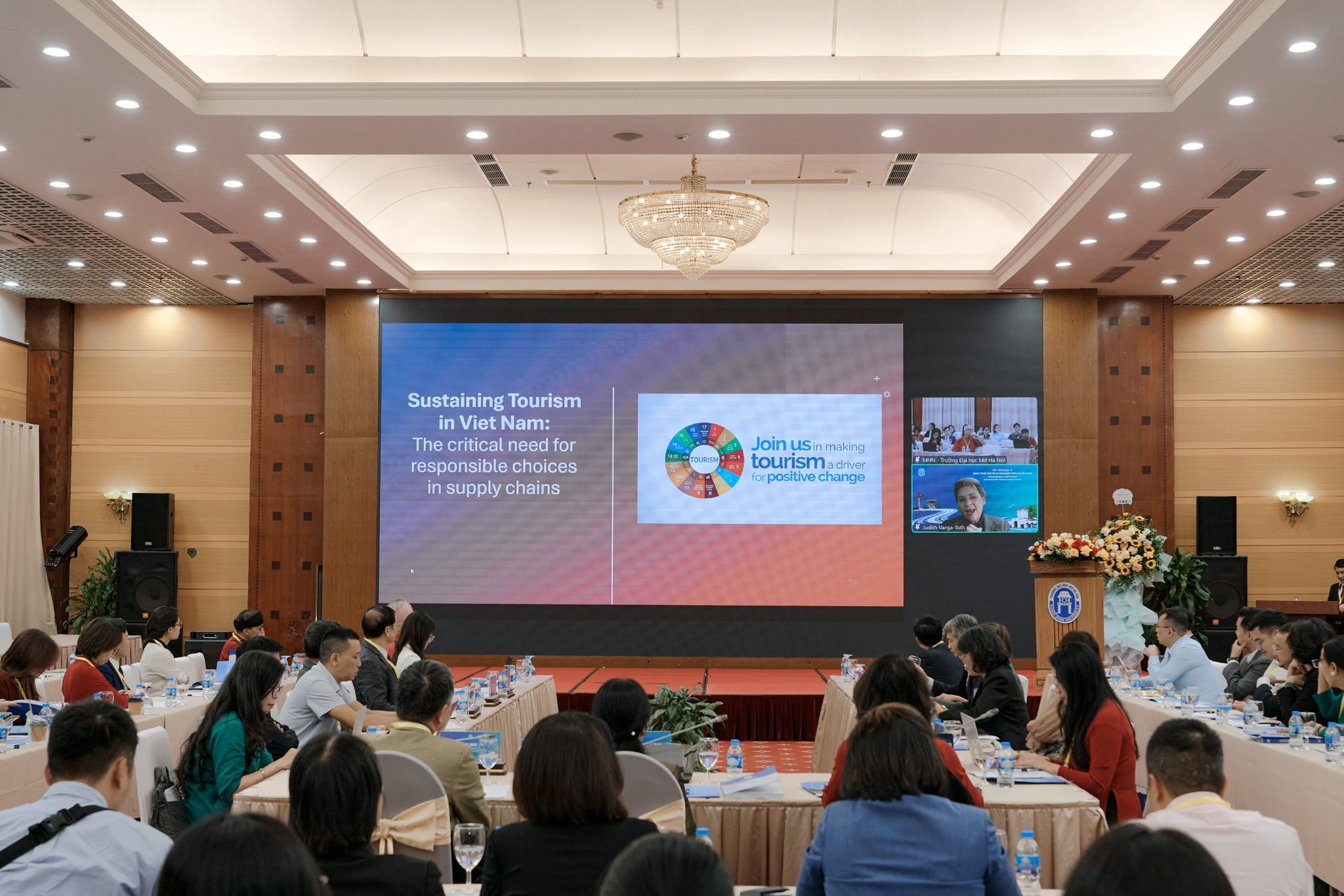 Tiếp theo, bà Judi Varga-Toth, chuyên gia phát triển du lịch bền vững đến từ Canada, mang đến bài tham luận “Phát triển du lịch bền vững tại Việt Nam: Nhu cầu cấp thiết về lựa chọn có trách nhiệm trong chuỗi cung ứng”. Bà chia sẻ kinh nghiệm quốc tế về việc áp dụng các tiêu chuẩn trách nhiệm xã hội trong ngành du lịch, đồng thời khuyến nghị Việt Nam cần đẩy mạnh hợp tác quốc tế và chuyển đổi số để quản lý hiệu quả hơn các chuỗi giá trị du lịch.