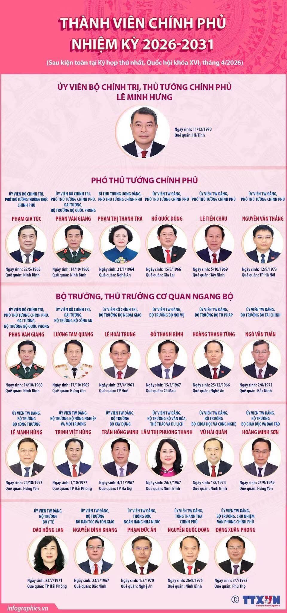 Tại Kỳ họp thứ Nhất, Quốc hội khóa XVI đã thông qua Nghị quyết bầu đồng chí Lê Minh Hưng, Ủy viên Bộ Chính trị, Bí thư Trung ương Đảng, Trưởng Ban Tổ chức Trung ương giữ chức Thủ tướng Chính phủ nước Cộng hòa xã hội chủ nghĩa Việt Nam.
