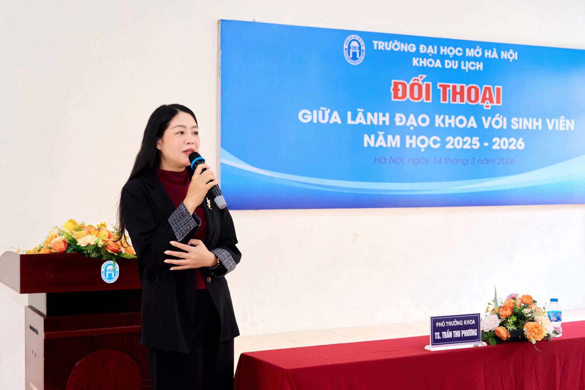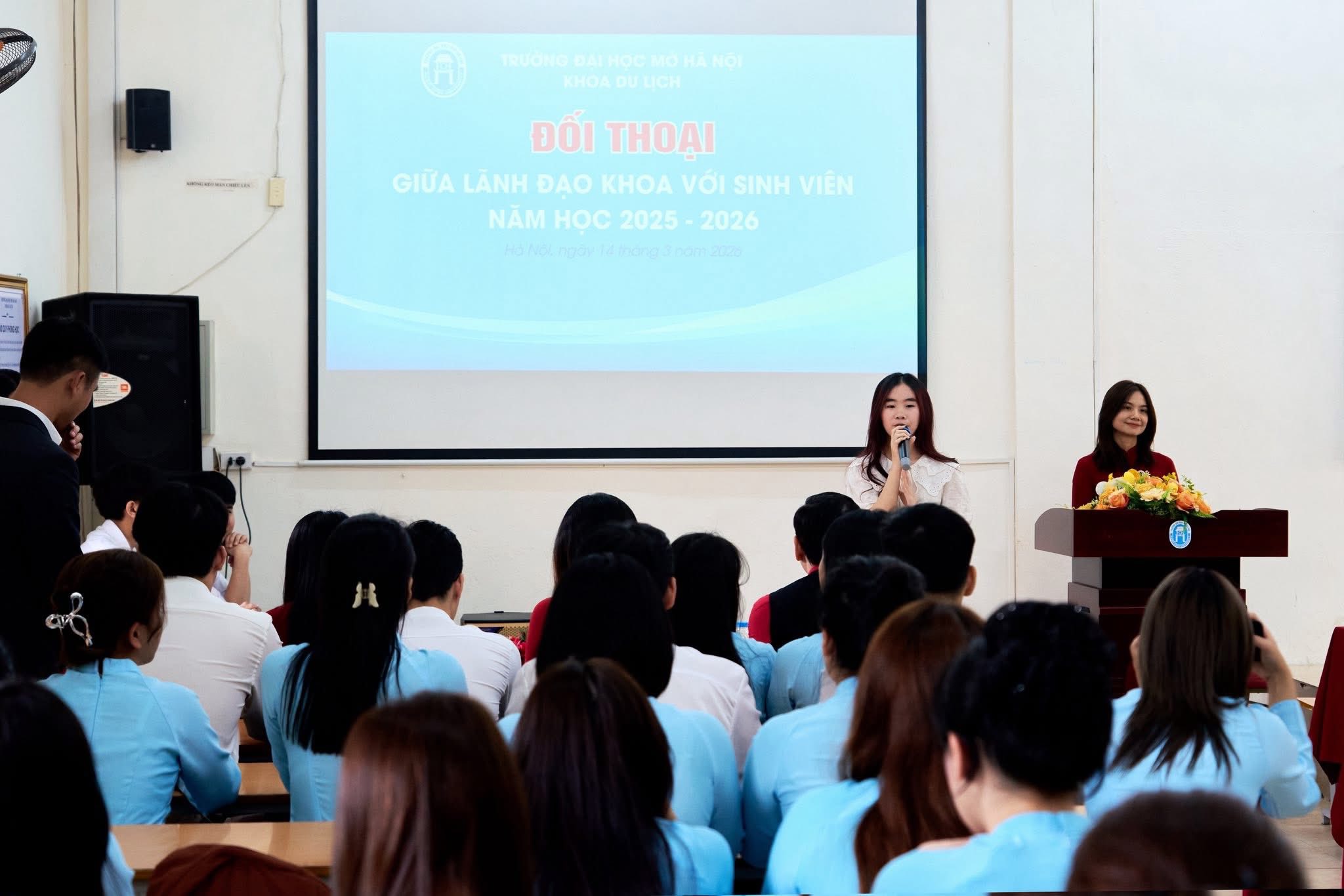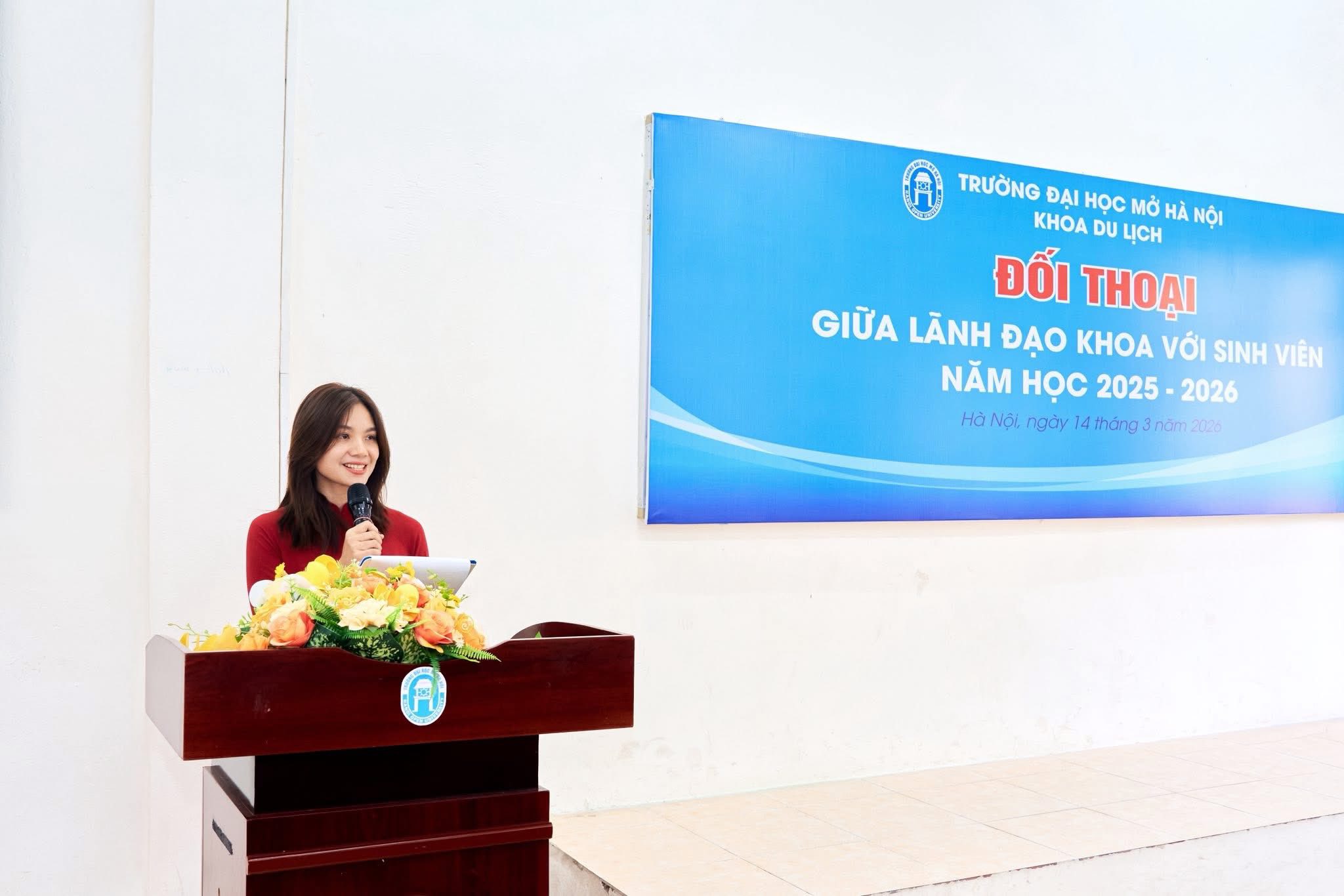 Ngày 14/3/2025 vừa qua, tại khu giảng đường Khoa Du lịch, Trường Đại học Mở Hà Nội đã diễn ra chương trình Đối thoại giữa Lãnh đạo Khoa với sinh viên năm học 2025–2026. Chương trình được tổ chức nhằm tạo diễn đàn trao đổi trực tiếp, giúp Lãnh đạo Khoa lắng nghe ý kiến, tâm tư, nguyện vọng của sinh viên, đồng thời kịp thời giải đáp những vấn đề liên quan đến học tập, rèn luyện và đời sống sinh viên.